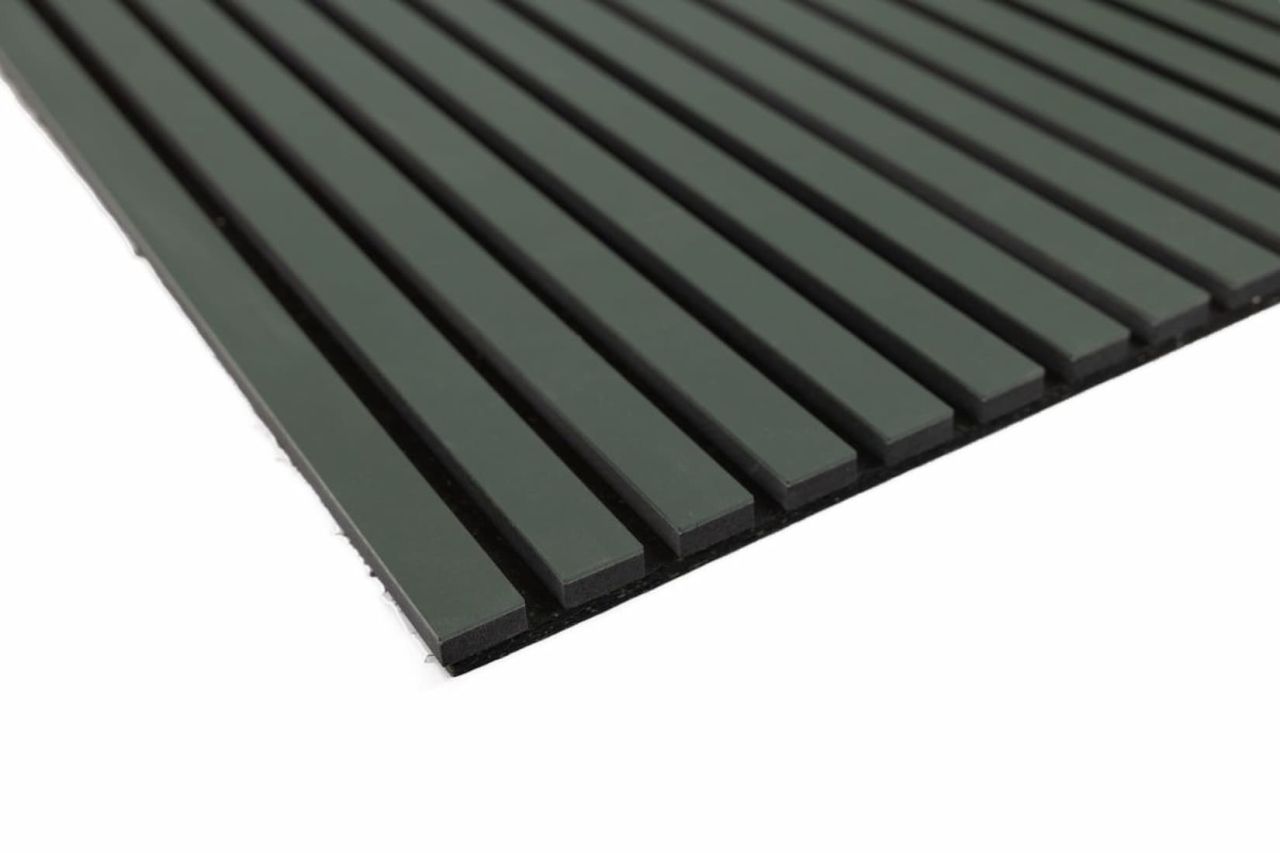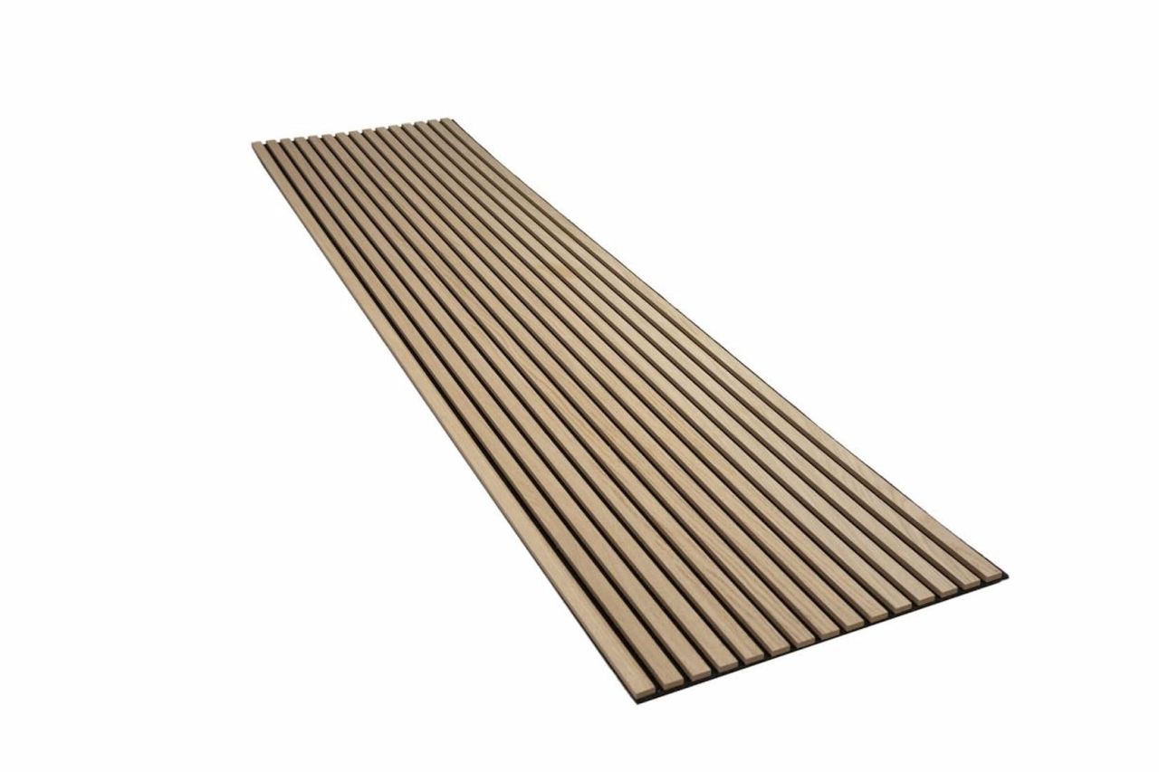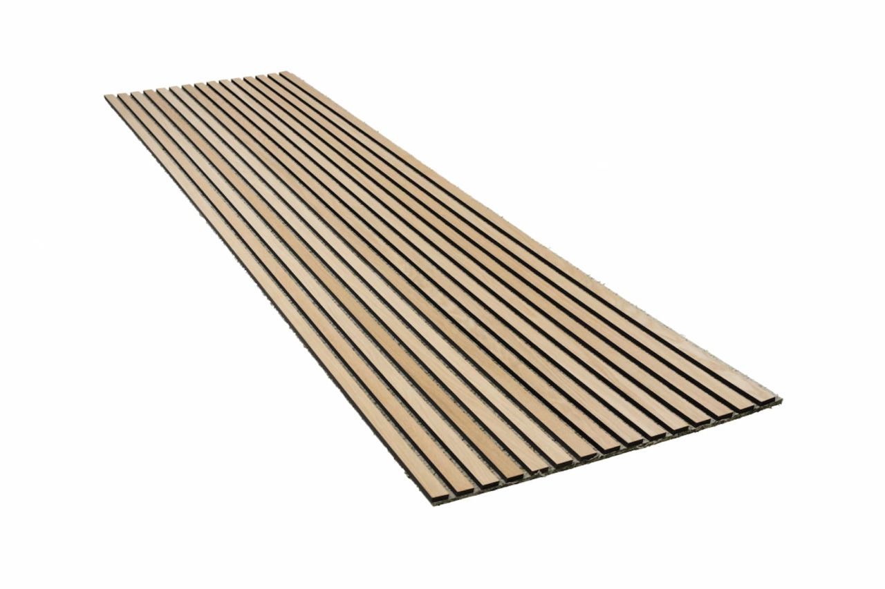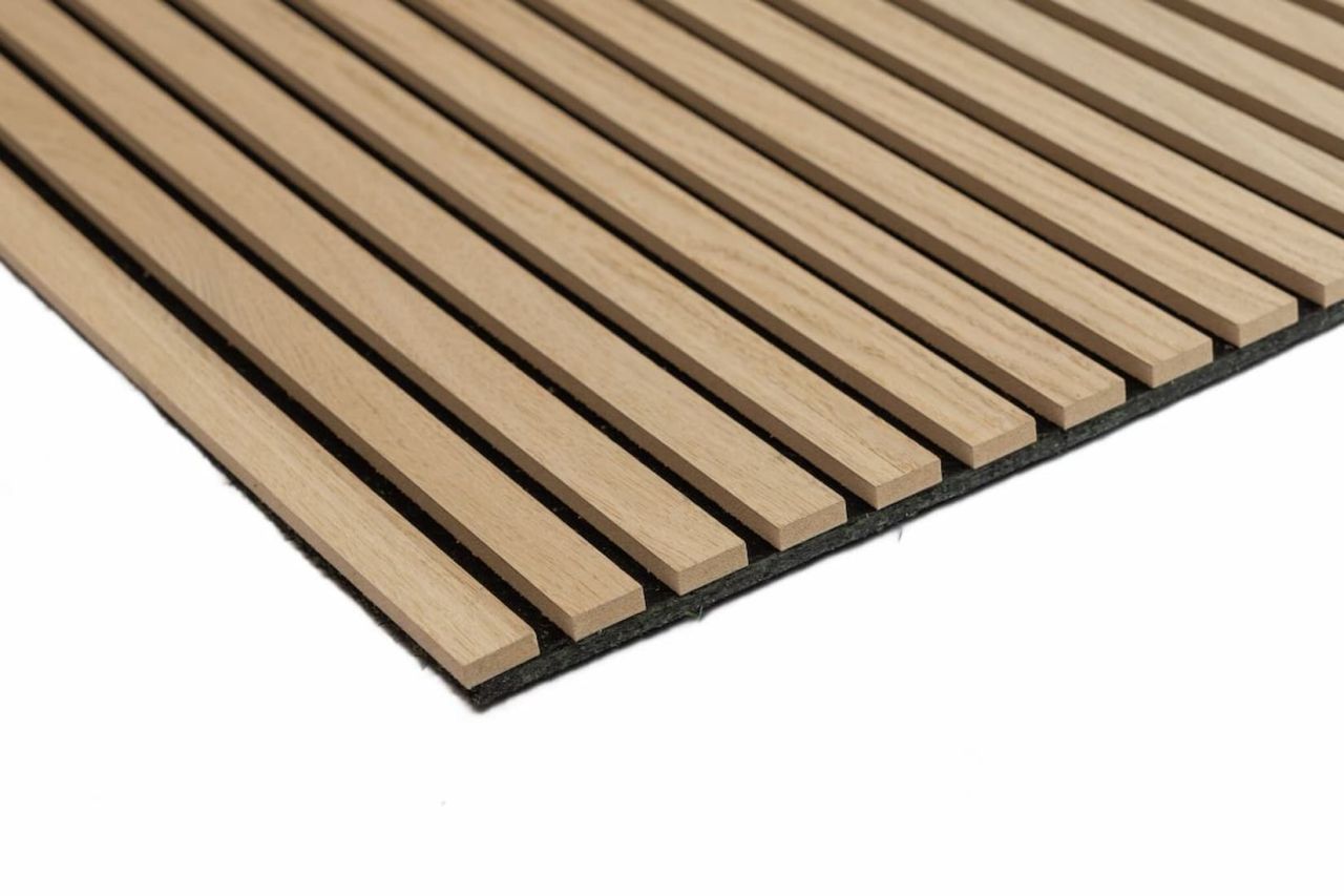 What is special about our Upcycled Turf panel is our felt on the back, which is made of 100% recycled artificial turf that is cut into small pieces and then mixed into a felt, which gives the beautiful and unique expression. Then our MDF slats are mounted with a real wood veneer on the front. This means that nuance differences may occur in the expression of the veneer.