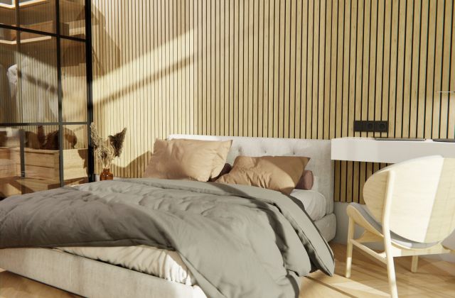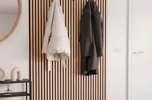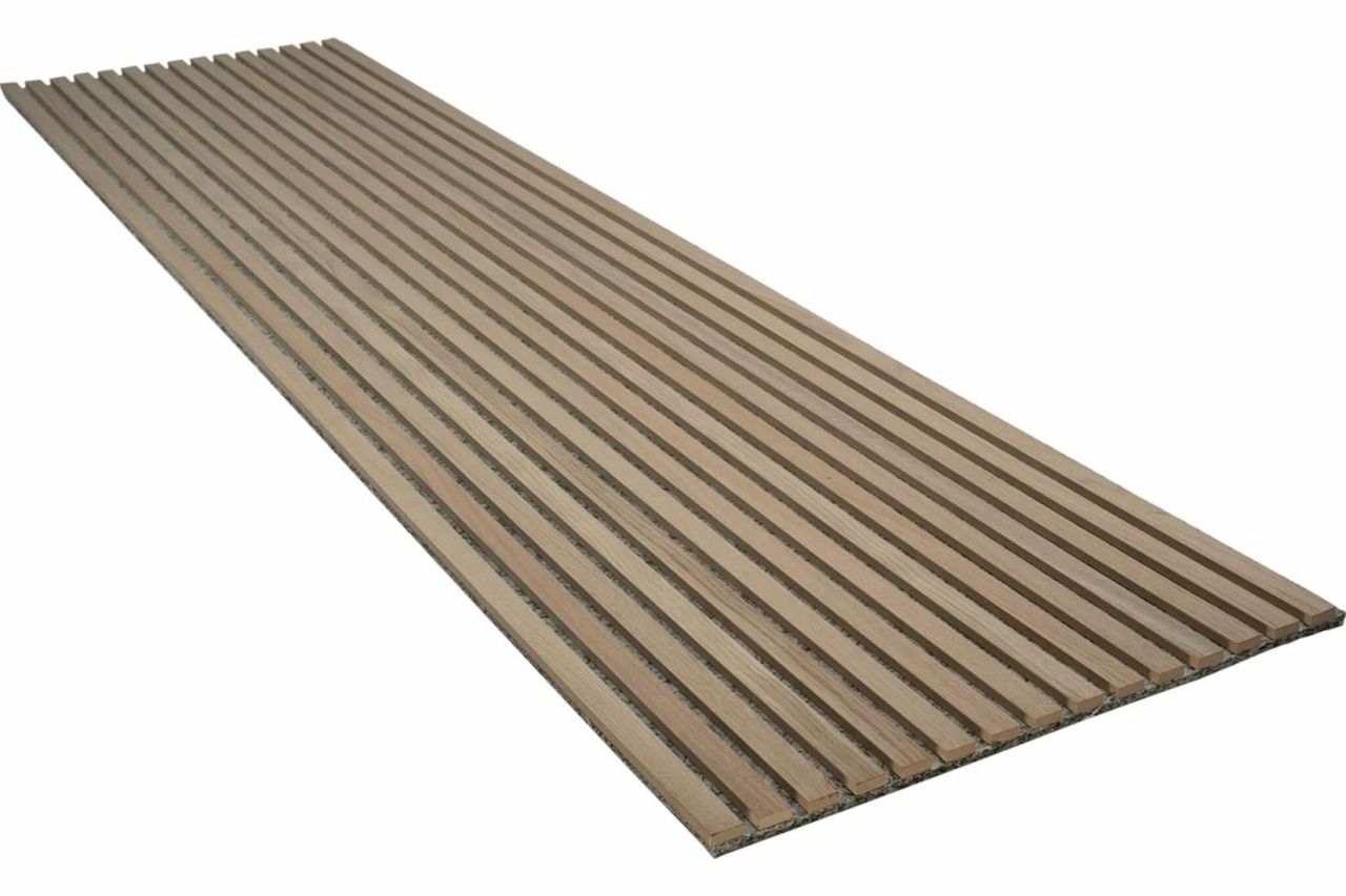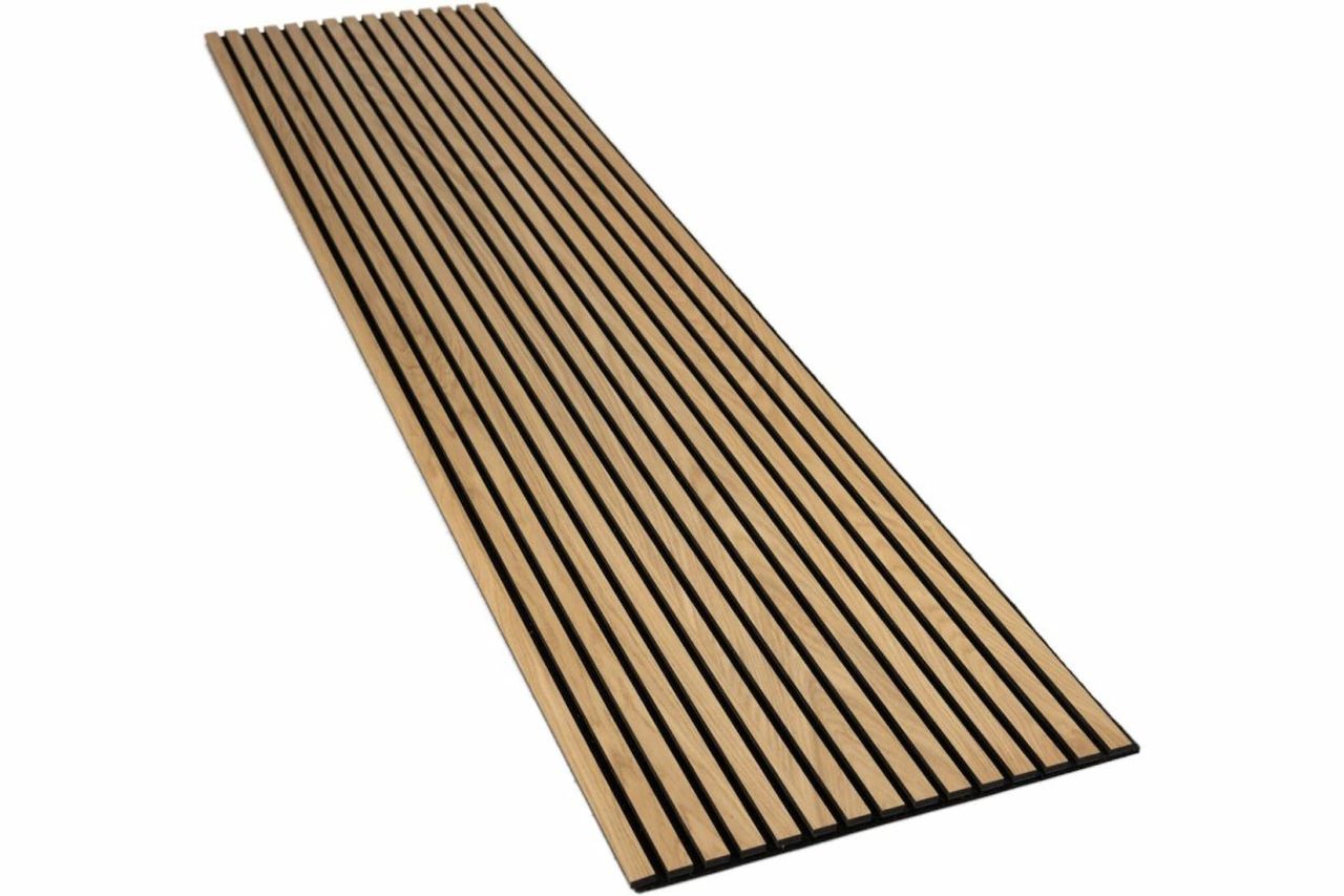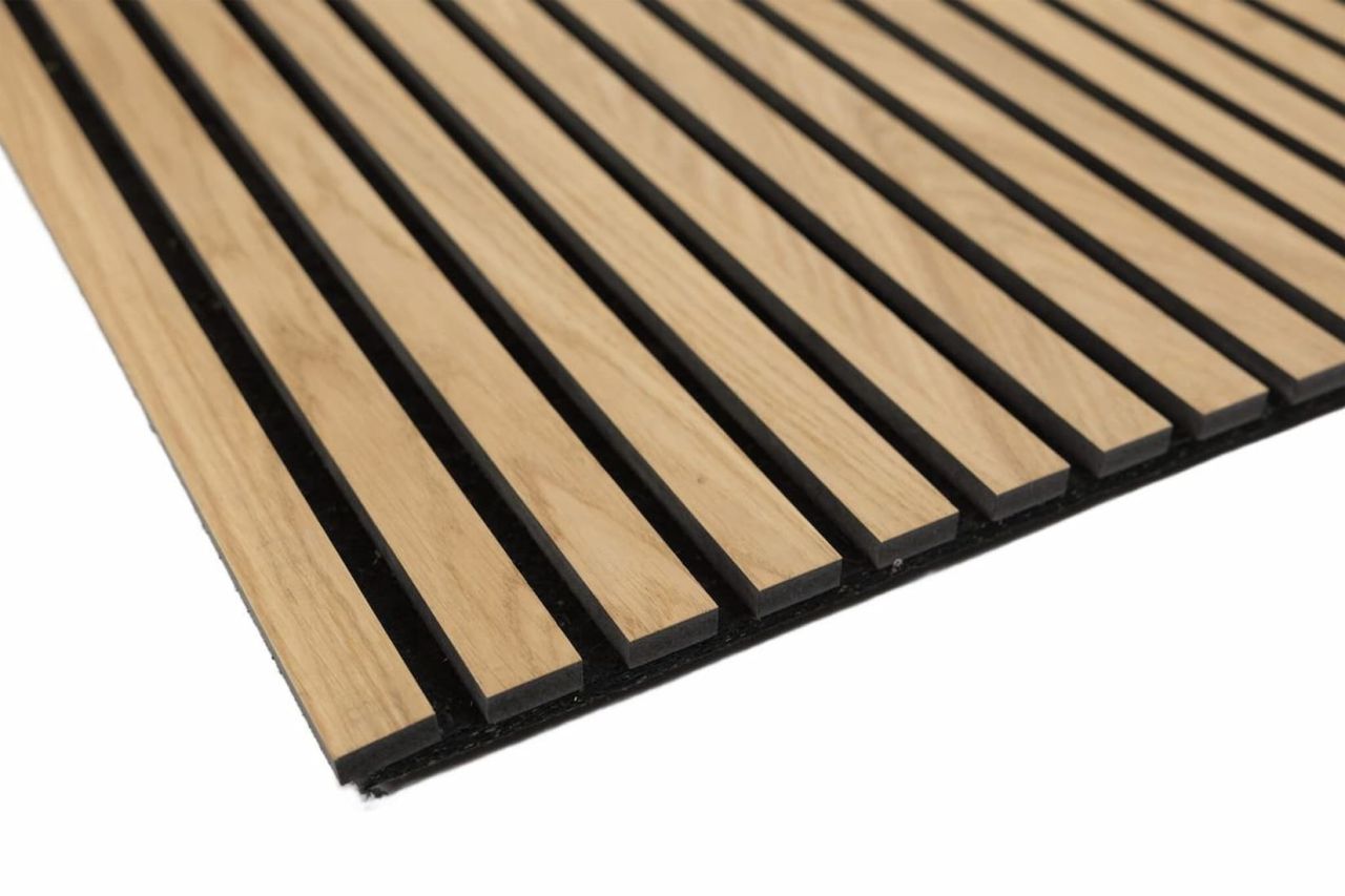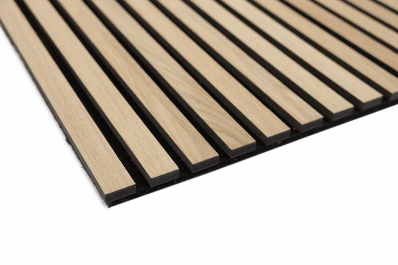 What is special about our Upcycled Turf panel is our felt on the back, which is made of 100% recycled artificial turf that is cut into small pieces and then mixed into a felt, which gives the beautiful and unique expression. Then our MDF slats are mounted with a real wood veneer on the front. This means that nuance differences may occur in the expression of the veneer.